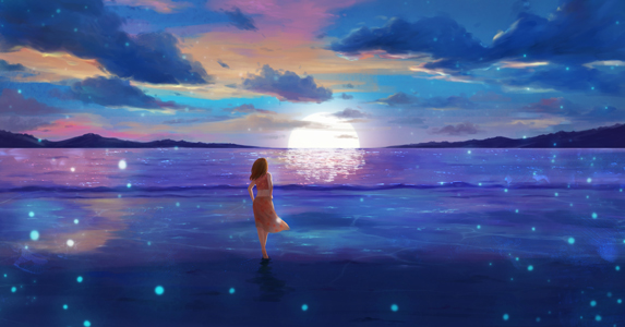 阳光下,蓝湖边,她笑意明艳灿烂,像是远道而来的精灵。
